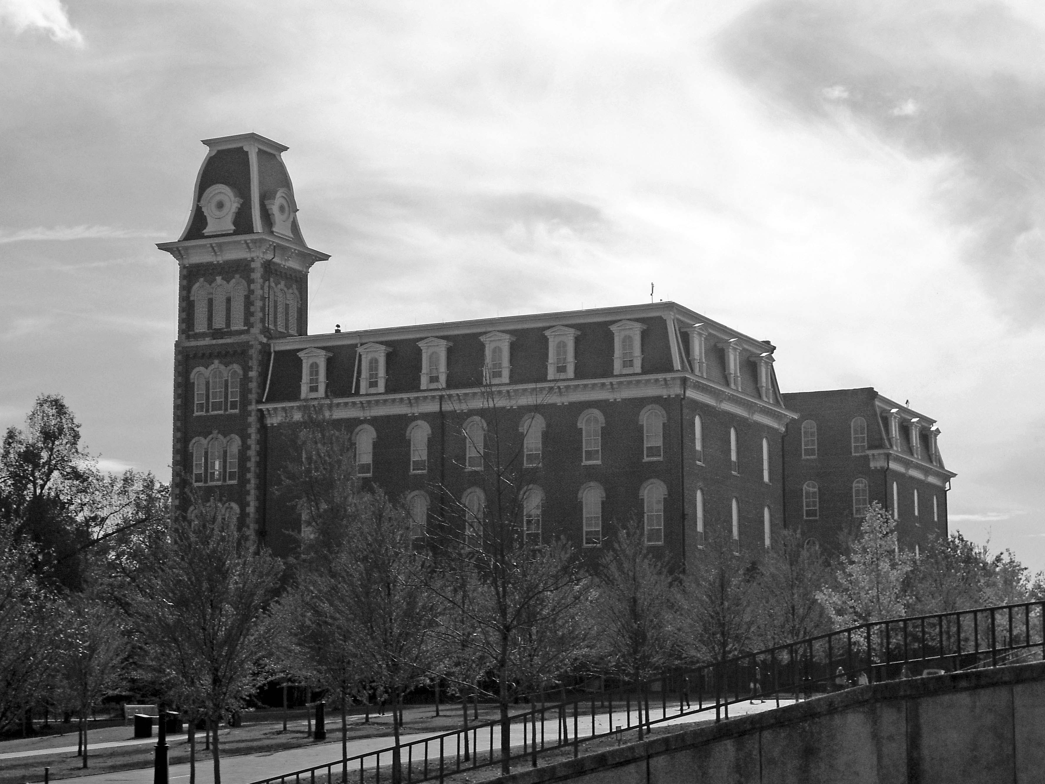 Old Main, as viewed from the northwest. On the University of Arkansas campus in Fayetteville, Arkansas.
