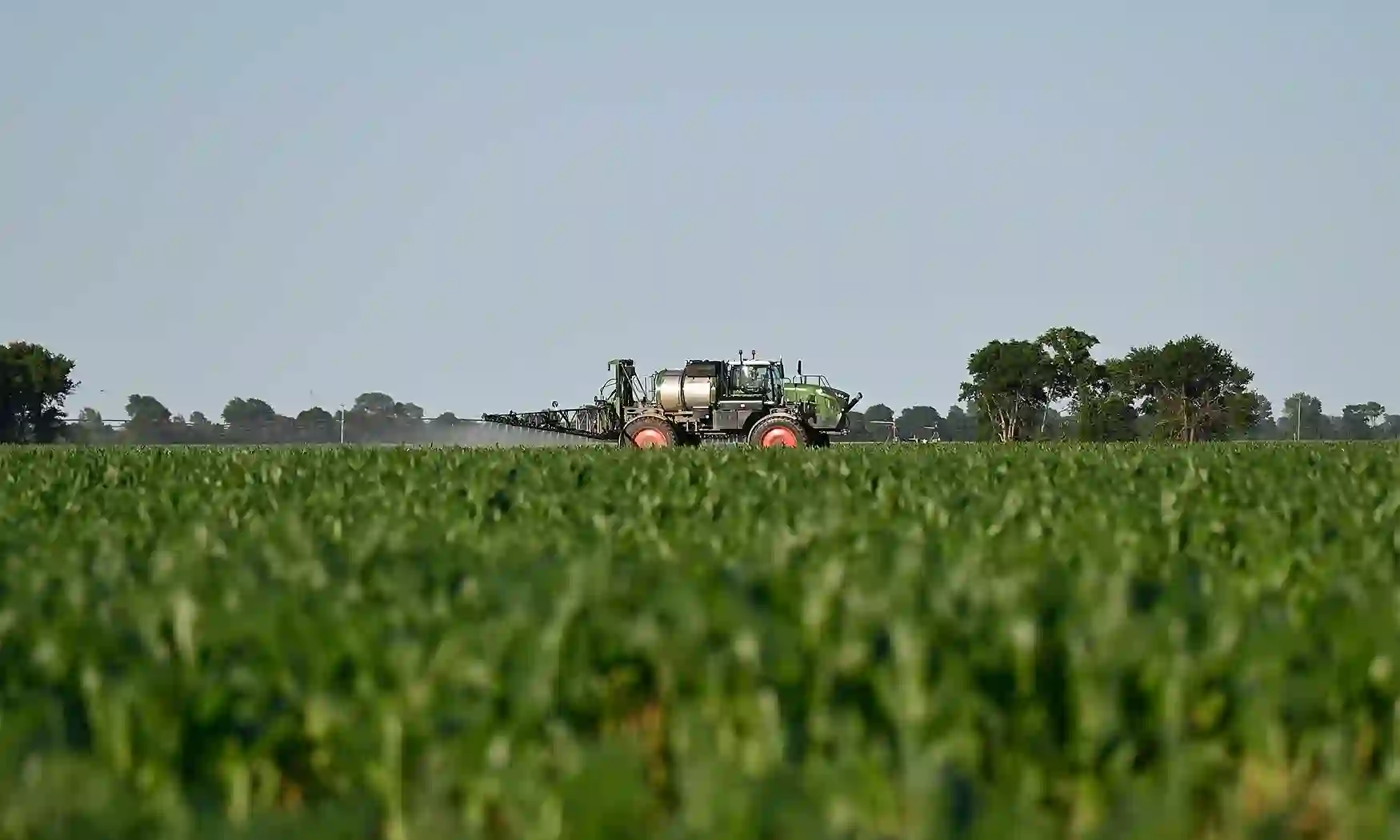 A farmer sprays pesticides on May 21, 2025, in Senath, Missouri.