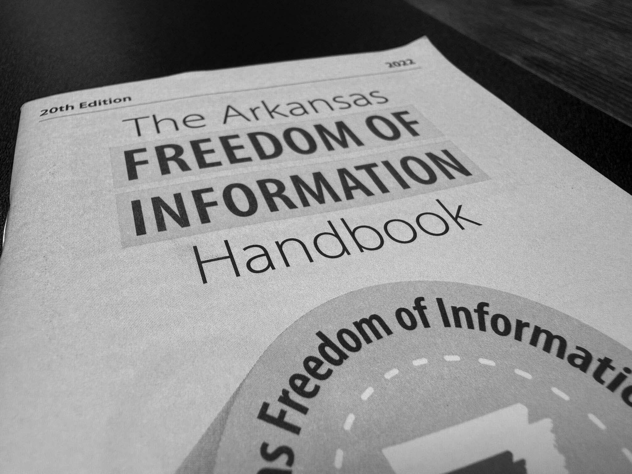 The cover of a copy of the Arkansas Freedom of Information Handbook.