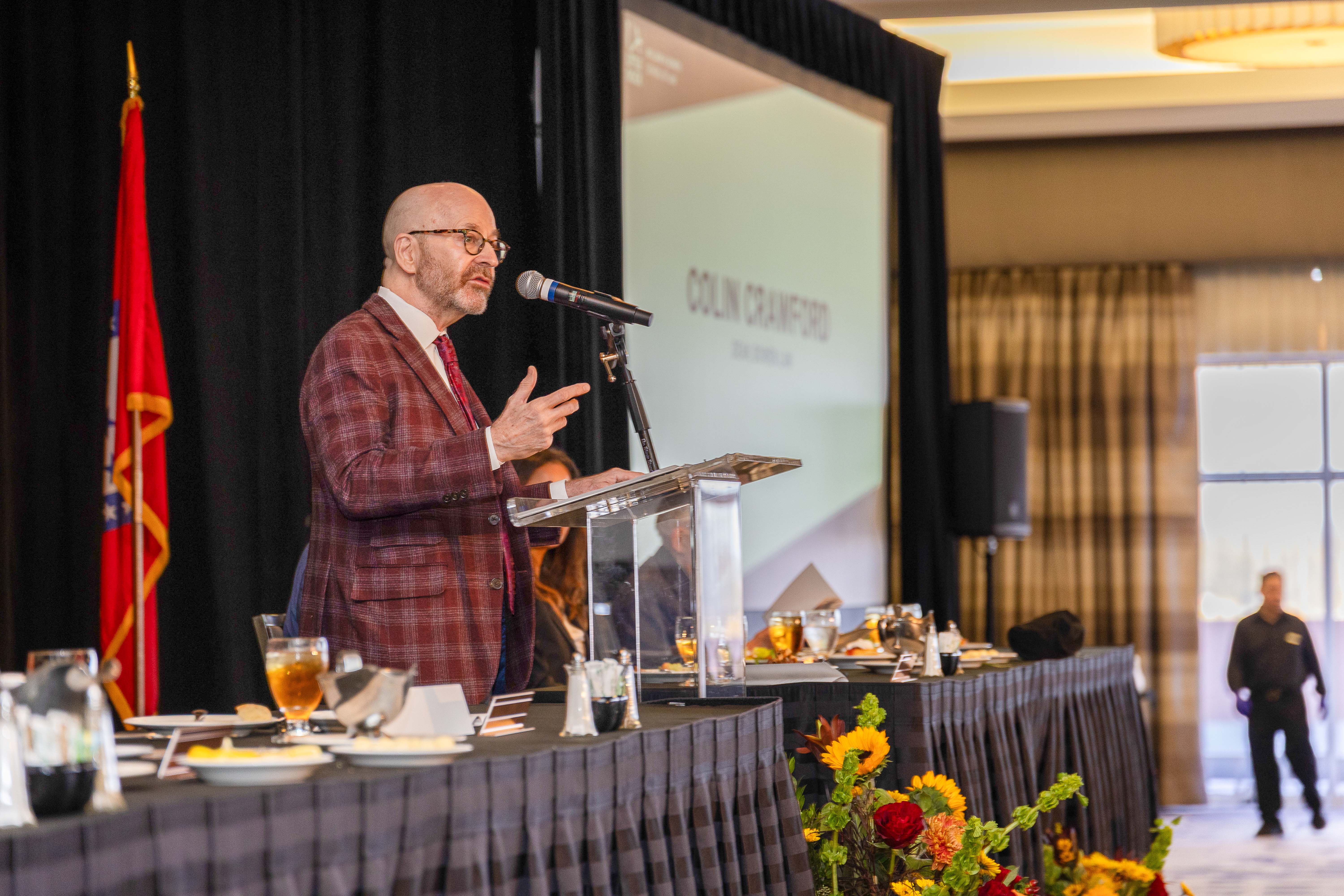 1. Dean Colin Crawford of Bowen Law School addresses the crowd during their annual Distinguished Alumni Luncheon on November 19.