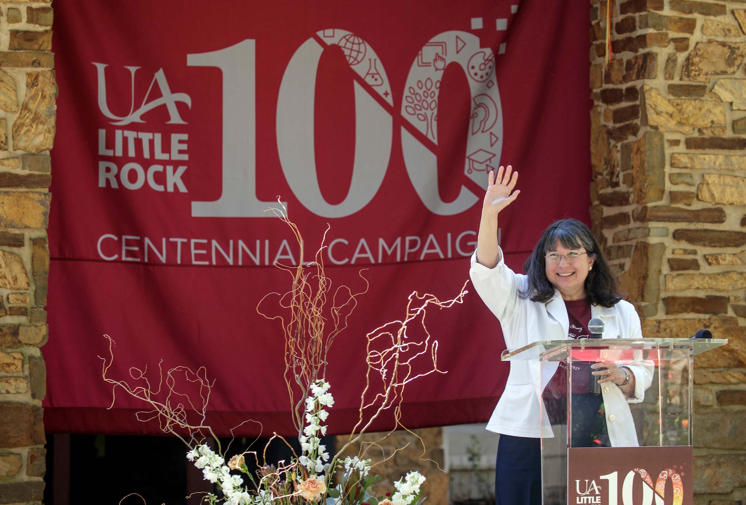 1. UA Little Rock Chancellor Christina S. Drale announces the start of the university’s Centennial Campaign in 2022.