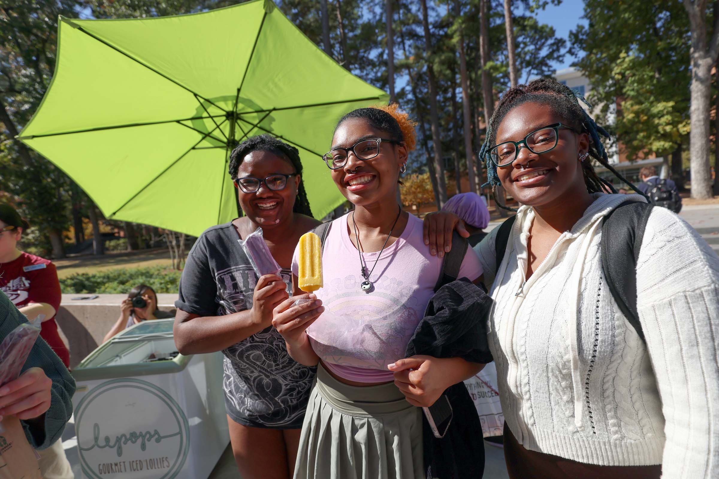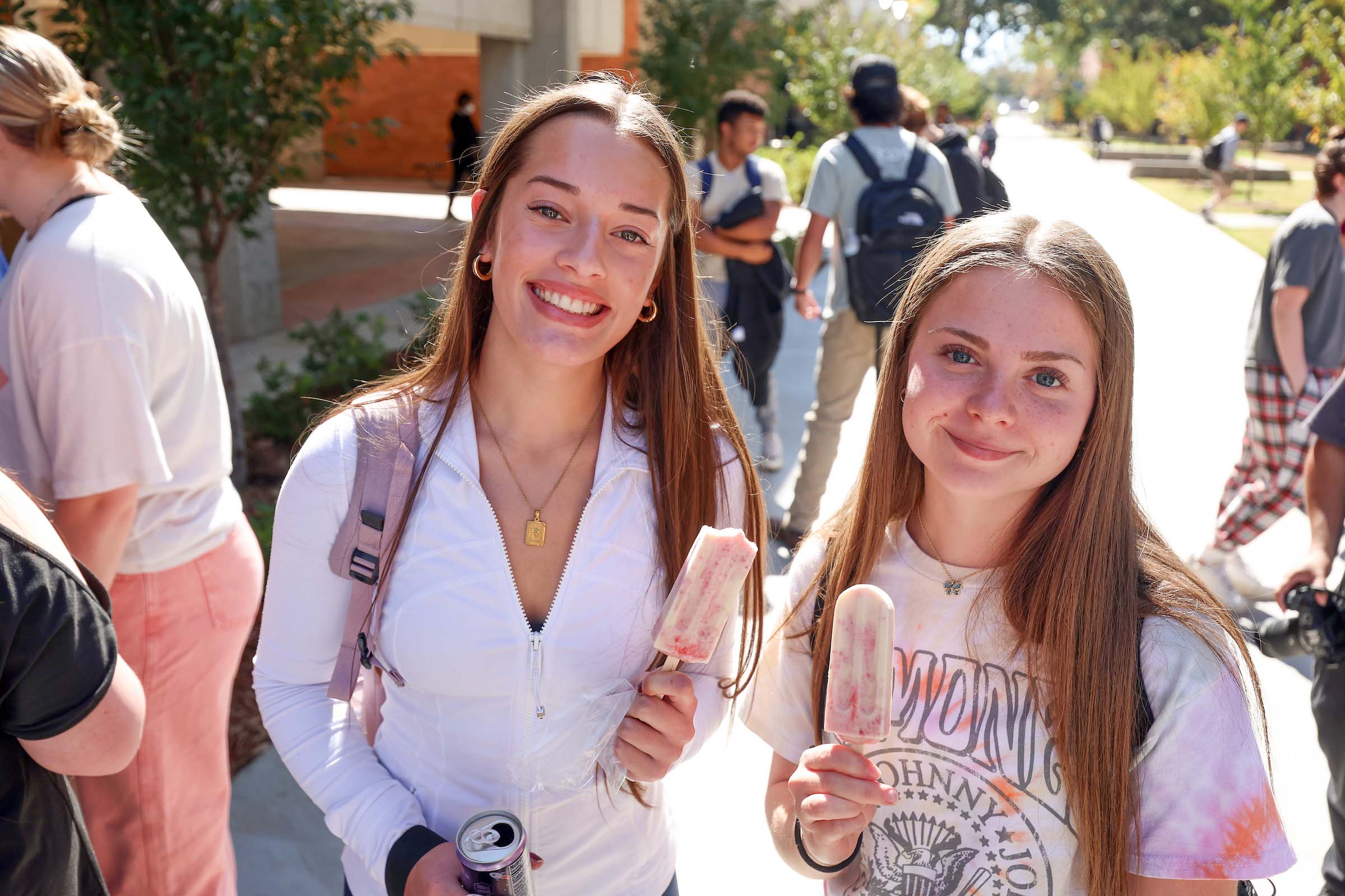 UA Little Rock students enjoy free Le Pops treats during Treats on Trojan Way.